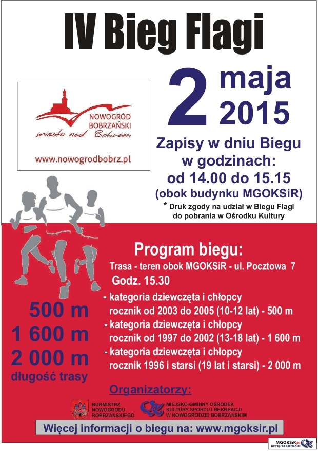 Zapisy w dniu Biegu w godzinach: 14:00 do 15:15 (obok budynku Miejsko Gminnego Ośrodka Kultury Sportu i Rekreacji)