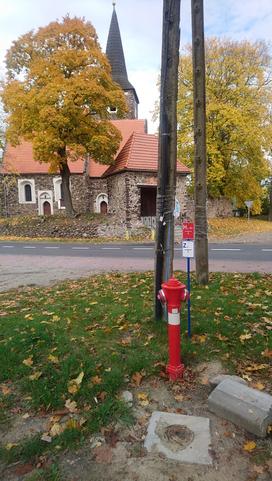 nadziemnym DN 80, dzięki czemu zwiększa się zabezpieczenie przeciwpożarowe dla świetlicy. Usytuowanie hydrantu w tym miejscu jest również ułatwieniem dla Ochotników Strażaków z Niwisk,