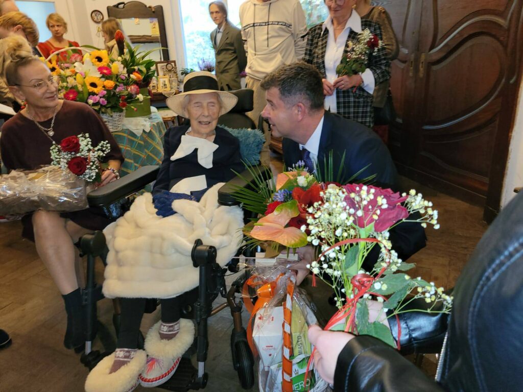 W dniu tego wyjątkowego święta dostojną Jubilatkę odwiedził Burmistrz Nowogrodu Bobrzańskiego, aby osobiście złożyć życzenia, wręczyć kwiaty i upominek.