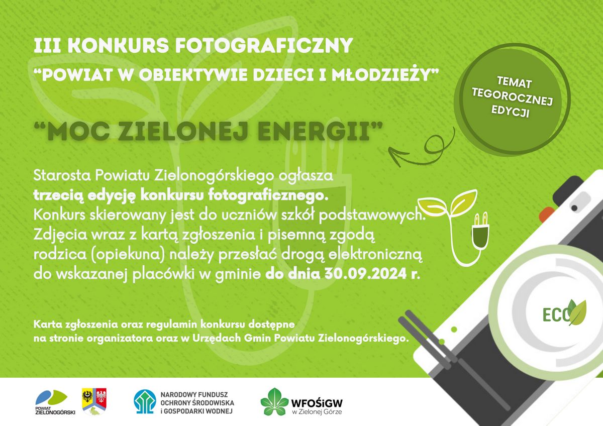 Tematem Tegorocznego Konkursu jest prezentacja i promowanie odnawialnych źródeł energii znajdujących się na terenie Powiatu Zielonogórskiego (energia wiatru, słoneczna, wody itd.)