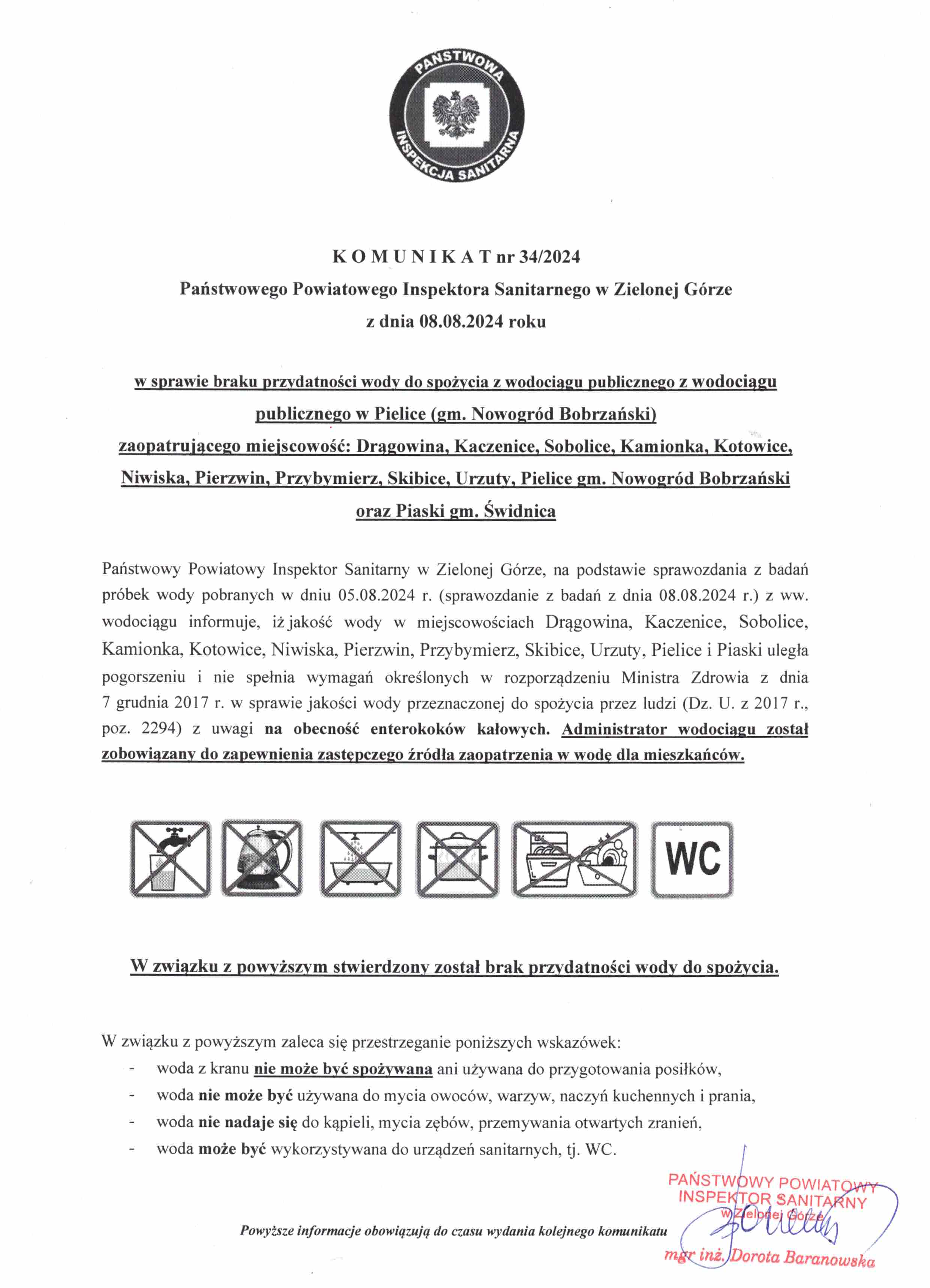 informuje, że woda z wodociągu jest niezdatna do picia.