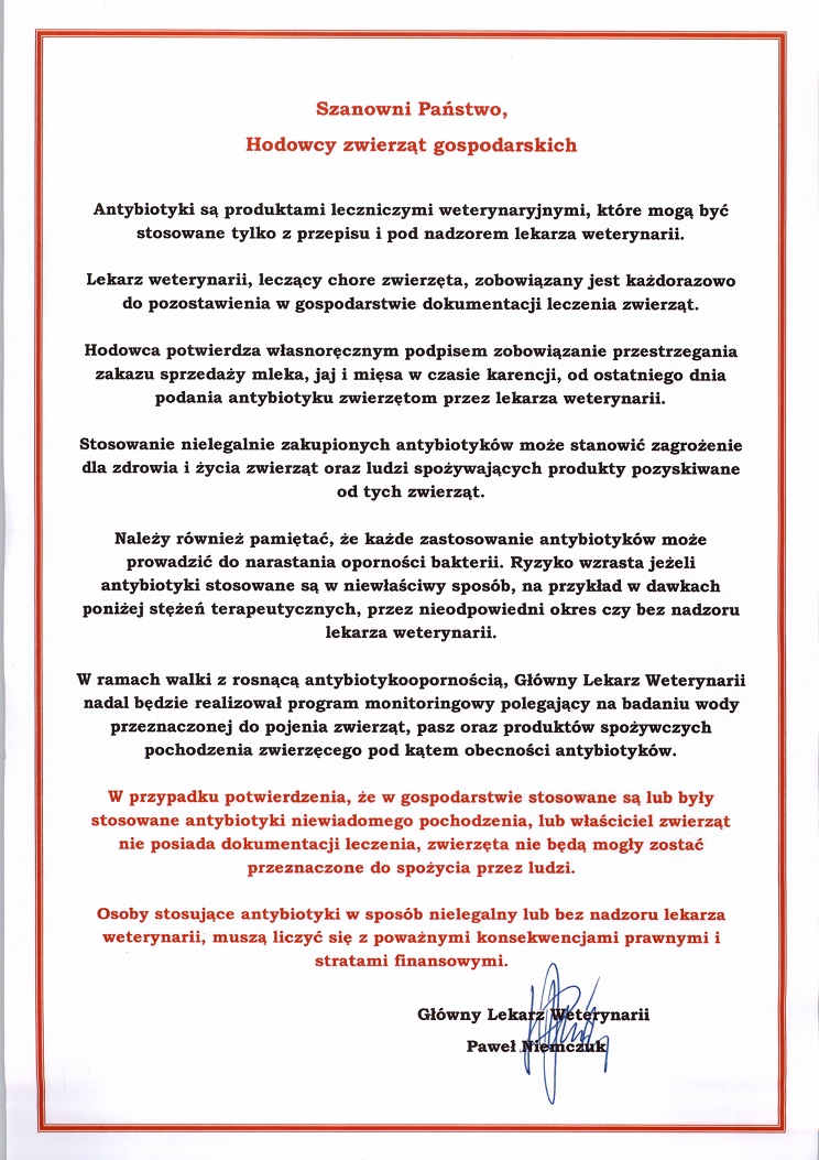 Komunikat Głównego Lekarza Weterynarii do hodowców zwierząt gospodarskich