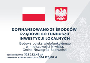 Gmina Nowogród Bobrzański w dniu 08.08.2022 r. podpisała umowę nr 357/2022 z Krajowym Ośrodkiem Wsparcia Rolnictwa OT Gorzów Wlkp., Filia w Zielonej Górze na realizację projektu „Budowa boiska wielofunkcyjnego w miejscowości Niwiska, Gmina Nowogród Bobrzański”.