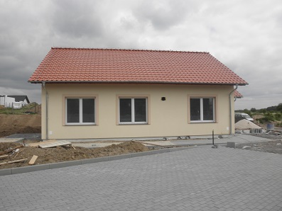 Roboty termoizolacyjne – docieplenie ścian zewnętrznych styropianem wg metody lekkiej, docieplenie stropu nad parterem wełną mineralną, docieplenie posadzki styropianem. Instalacja wody zimnej i ciepłej z rur miedzianych. Instalacja wentylacji mechanicznej z wentylatorami osiowymi ściennymi. Instalacja oświetlenia, gniazd wtykowych i zasilania pompy ciepła. Wykonanie chodników i placu postojowego z polbruku.