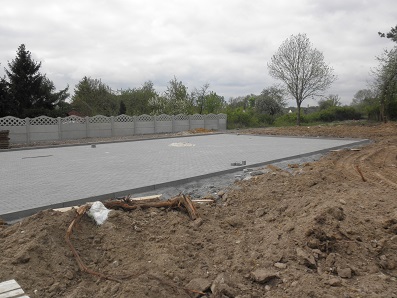 Roboty betoniarskie i zbrojarskie- betonowanie ław fundamentowych, układanie stropu prefabrykowanego z płyt kanałowych ,betonowanie trzpieni, wieńców.