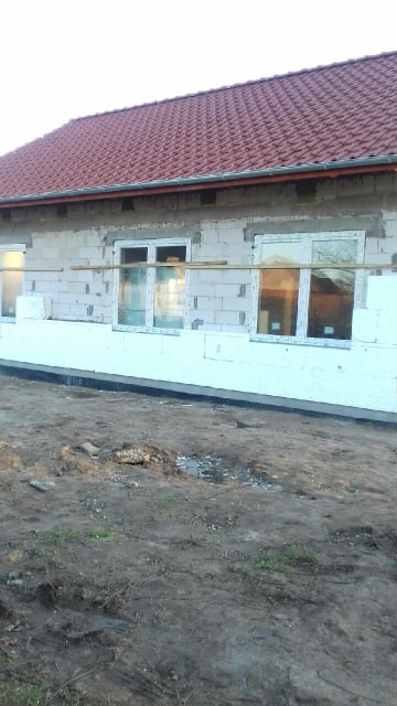 Roboty termoizolacyjne – docieplenie ścian zewnętrznych styropianem wg metody lekkiej, docieplenie stropu nad parterem wełną mineralną, docieplenie posadzki styropianem,