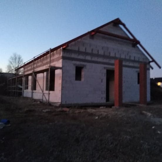 Roboty murowe – wznoszenie ścian z bloczków betonowych na zaprawie cementowej i ścian z bloczków gazobetonowych na zaprawie klejowej, wznoszenie kominów wentylacyjnych z pustaków betonowych.