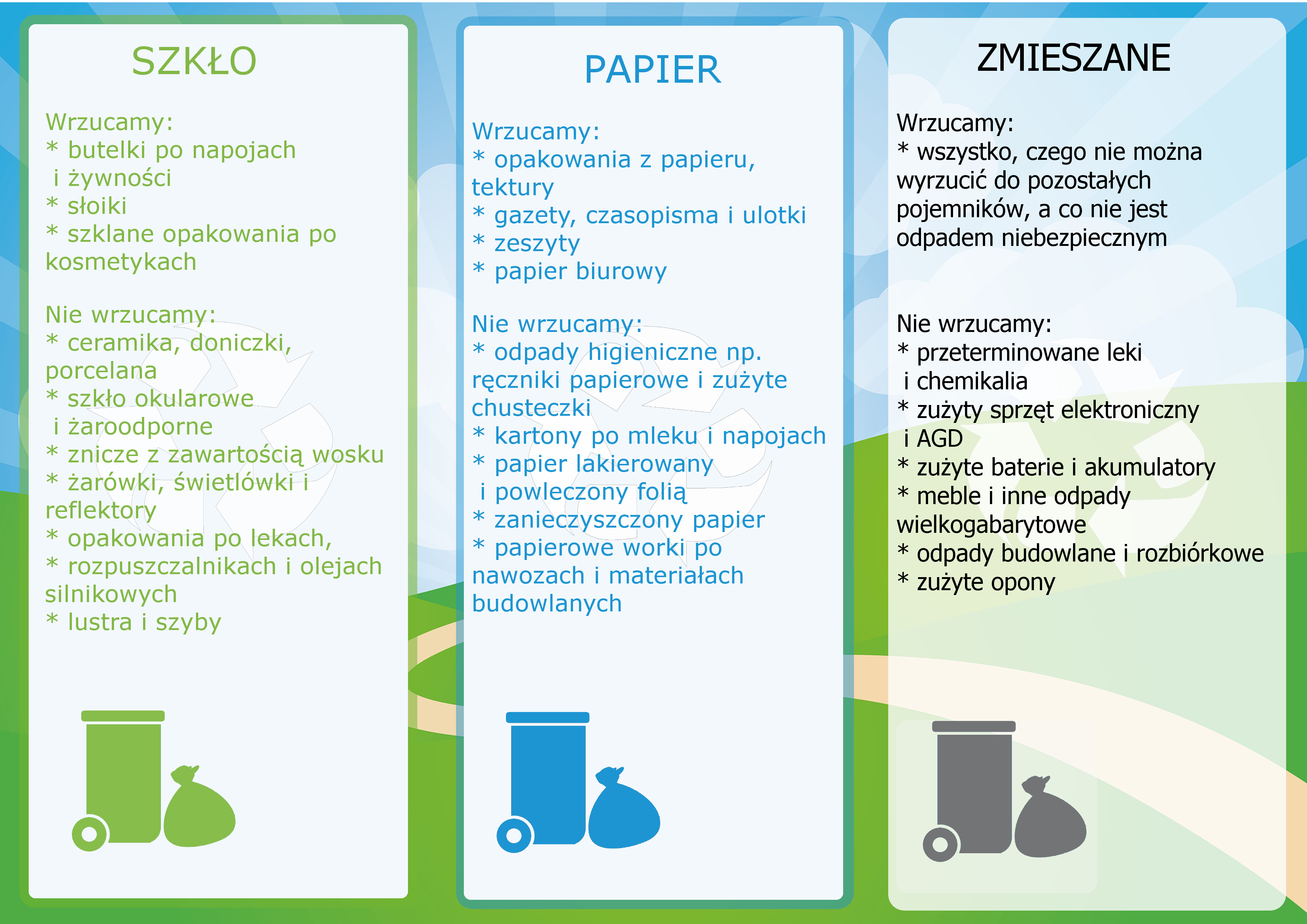 W roku 2018 r. w celu rozpropagowania prawidłowego systemu segregacji odpadów zaktualizowano ulotki