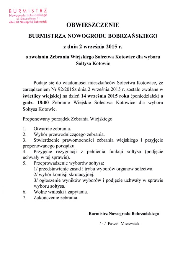 Informacja – zebranie wiejskie sołectwa Kotowice