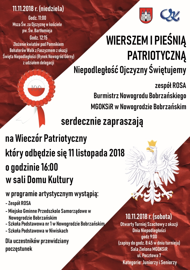 ZAPRASZAJĄ NA UROCZYSTE OBCHODY DNIA NIEPODLEGŁOŚCI