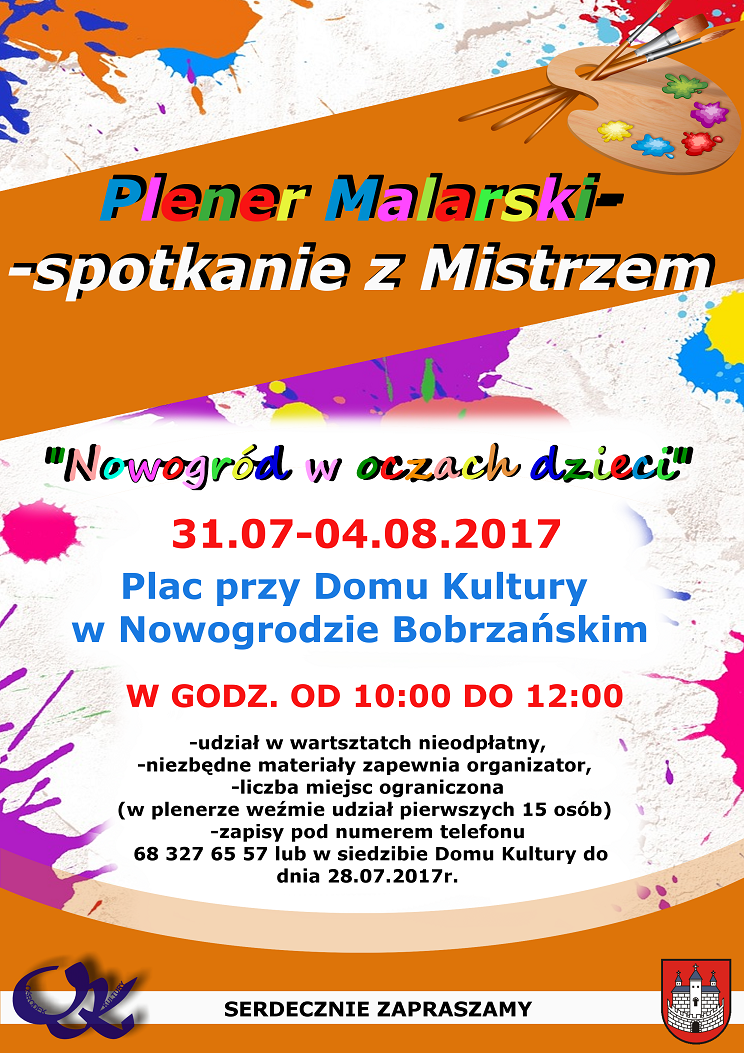 Warsztaty z Mistrzem odbędą się w dniach od 31.07-04.08.2017 r. w godz. od 10.00-12.00. Temat przewodni zajęć to „Nowogród w oczach dzieci”.
