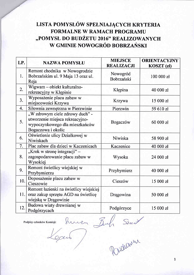 W tym samym dniu o godzinie 15.15 w Urzędzie Miejskim w Nowogrodzie Bobrzańskim odbyło się losowanie członków do Komisji w ramach Programu Pomysł do budżetu 2016. Zgodnie z zapisami Regulaminu programu (§ 3 punkt 5), spośród zgłoszonych chętnych przedstawicieli mieszkańców wylosowano trzy osoby, które wejdą w skład sześcioosobowej Komisji: Pan Roman Balak, Pani Dorota Szmit, Pan Andrzej Brodzik.