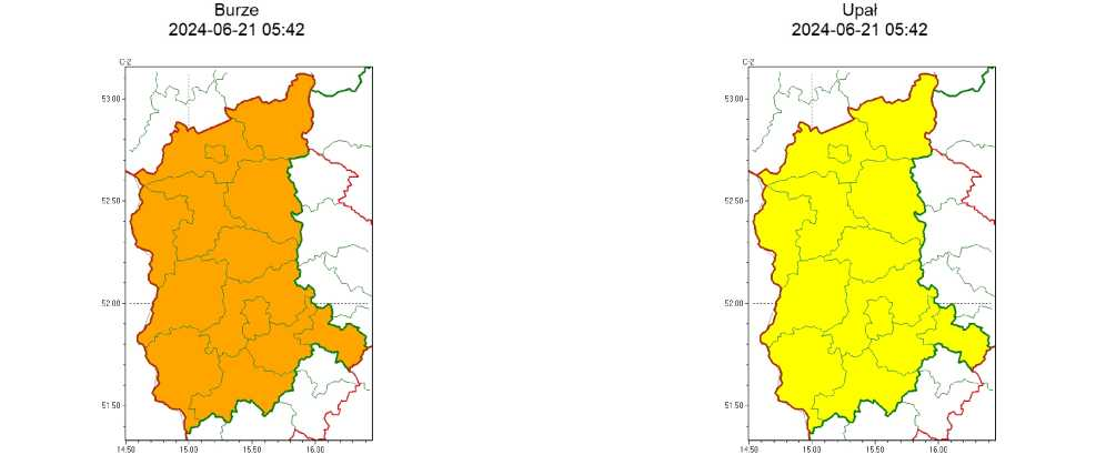 OSTRZEŻENIA METEOROLOGICZNE ZBIORCZO NR 101 WYKAZ OBOWIĄZUJĄCYCH OSTRZEŻEŃ o godz. 05:42 dnia 21.06.2024
