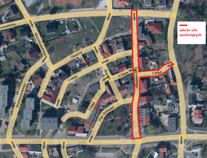 Zamknięcie ul. Dąbrowskiego i ul. 3-maja