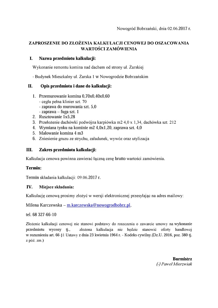 Zaproszenie do złożenia kalkulacji cenowej do oszacowania wartości zamówienia